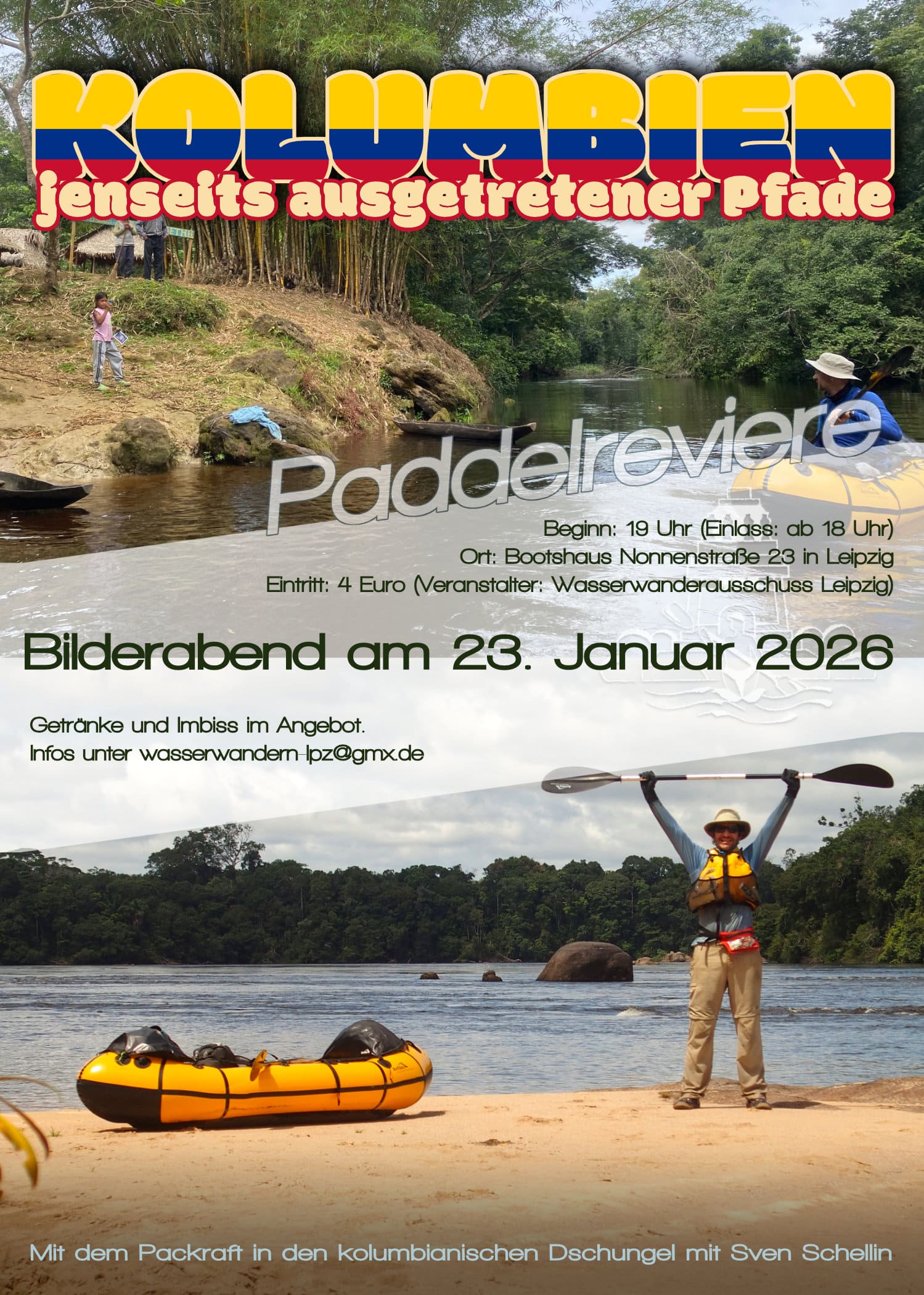 Der Wasserwanderausschuss Leipzig lädt zum traditionellen Januar-Bilderabend ins Bootshaus Nonnenstraße ein. Der aus Leipzig stammende Packraftpionier Sven Schellin führt uns anhand von Ton und Bild von vegetationsarmen Hochebenen in den dichten Regenwald und über blanke Basaltkegel zu den schönsten Rastplätzen entlang der Flüsse.